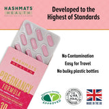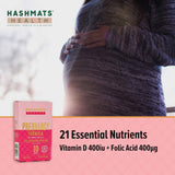 Hashmats Health Pregnancy Formula was developed using Pharmaceutical Grade Technology in the UK with all claims scientifically proven by the European Food Safety Authority (EFSA). Pregnancy Formula is a complex formulation of essential nutrients that satisfies the recommended guidelines provided by NHS England and the Department of Health. The formulation contains Vitamin D3 400iu, Folic Acid 400mcg, Vitamin C, Iron and Calcium - all recommended as part of a healthy diet during pregnancy,