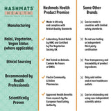 100% HMC Halal Certified, INFORMED-SPORT Certified, Vegetarian Society Approved and Made in the UK. Hashmats Health products are NOT tested on animals.