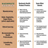 100% HMC Halal Certified, Vegetarian Society UK Approved and Made in the UK. Hashmats Health products are NOT tested on animals.